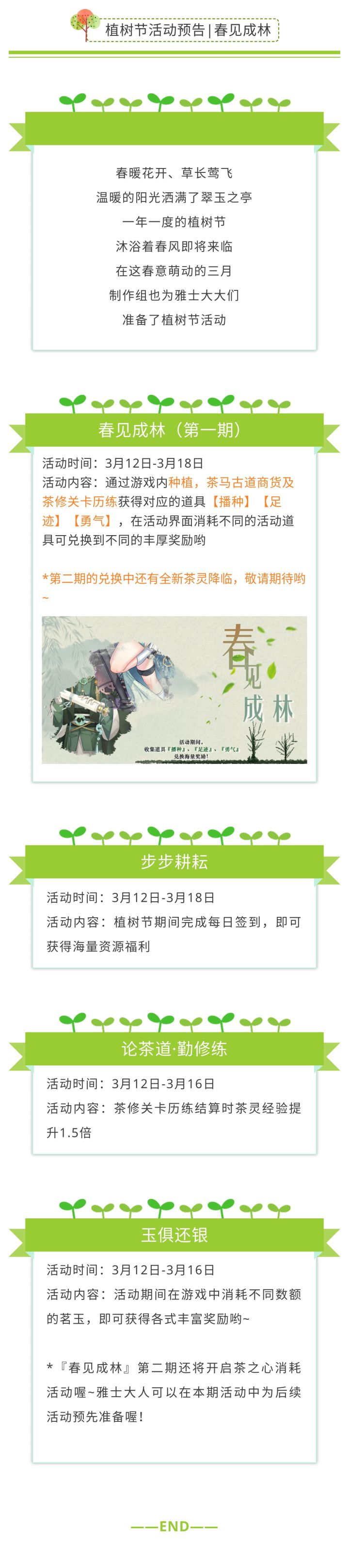 Hello,雅士们!今天小蜜蜂给大家带来了『春见成林』活动道具掉率的说明,雅士大大们可以根据下面表格内容安排种植,茶马古道商货及茶修关卡历练哟,话不多说一起去看看吧~