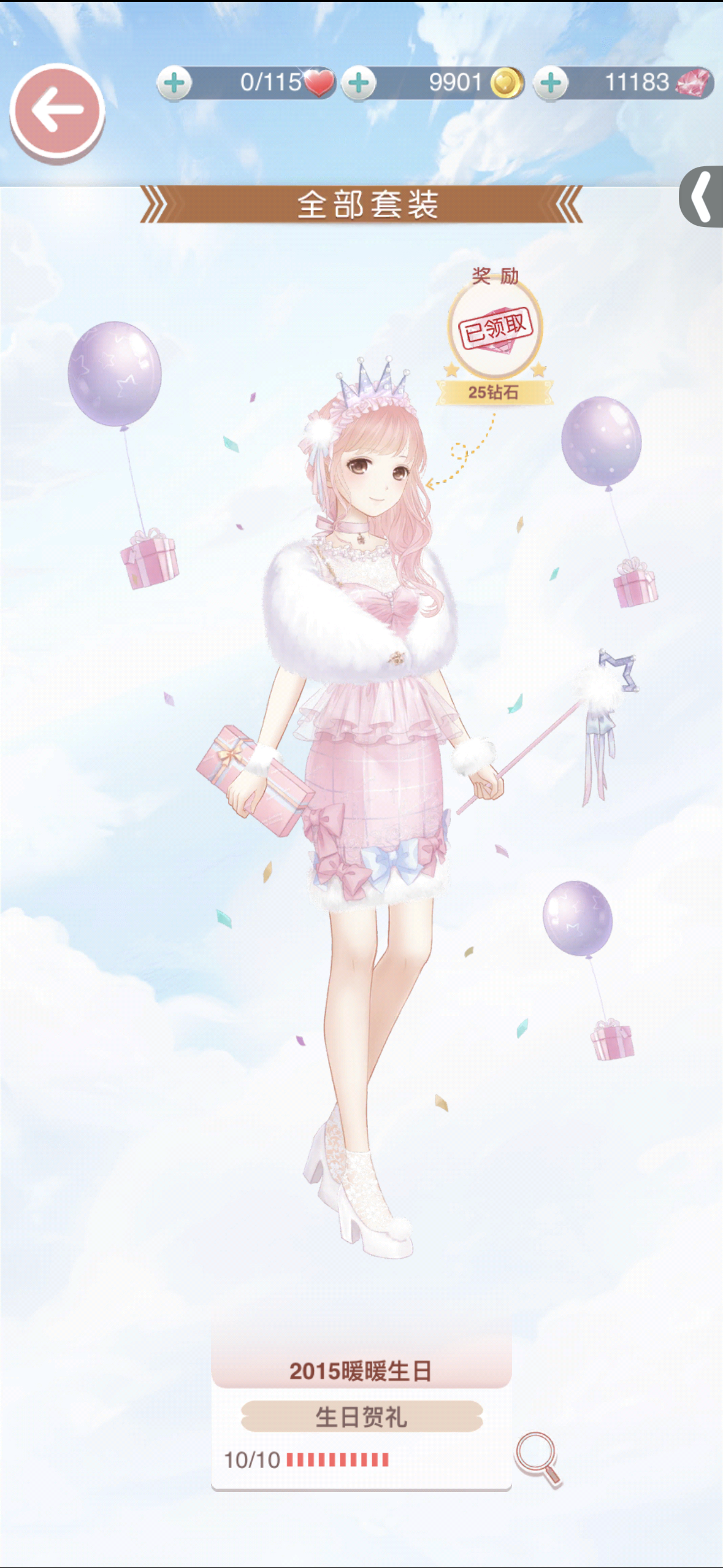都是金币套,突发奇想收集一下,想存钻开心愿之门或者看看春节阁 #奇迹暖暖金币套 以下是每年生日套装名称:【2015年】生日贺礼【2016年】甜蜜心愿【2017年】时光礼赞【2018年】韶华之歌【 2019年】璀璨甜梦【2020年】星梦盛典【2021年】锦绣芳辰【 2022年】瑰绮时约【2023年】时光霓匣【2024年】香花诞梦【2025年】繁花相约之时2026.1.5记录