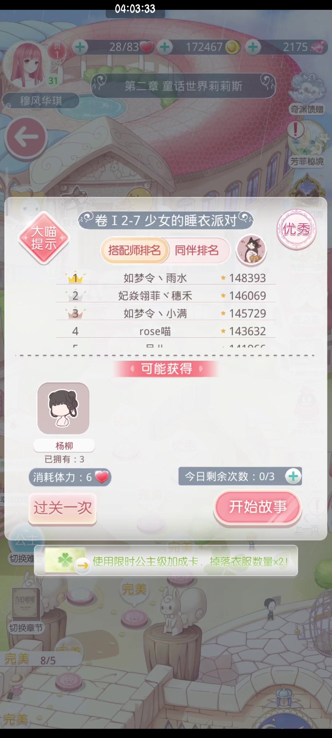 这关有运气成分也要把技能升很高,开始后看看对面npc用了什么技能,比如她挑剔 我们要马上点免疫挑剔,不是的话微笑起手,我用的微笑 飞吻 免挑 沉睡除了兔女郎套再穿一些活泼 可爱