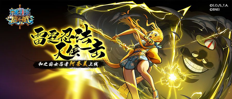在将天候视为科学的小空岛『维莎利亚』学习关于新世界的天候两年之后,奈美的实力得到了明显提升,在新世界篇章中有多次高光时刻。历经种种历练后,草帽团也终于成功抵达和之国,奈美化名阿奈美,身着一袭和服,还掌握了忍法,更设计将大妈的『宙斯』夺走,附着于天候棒之上,实力再次大涨,成为不容小觑的战力! 雷霆忍法,天候一击!阿奈美的加入能否为纯电、水电体系带来全新的变化?赶紧来看掌控雷电的阿奈美实力如何吧! 伙