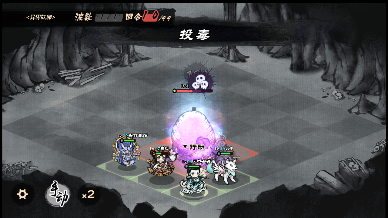 琅铘必备!也不知道是不是BUG,琅铘的技能被动是攻击敌人后减少敌人60%的伤害,但是这个被动减伤可以达到99%!只要打两轮后敌人就打不动你了。下面上图琅铘的技能虫卵被减伤害后的输出这套阵容的核心是琅铘,阿修罗的普攻带毒伤效果,BOSS吃毒后不能回血(毒伤是百分比扣血,很实用),其他的毒伤妖怪也能替代,其次是云生,技能回血嘛,大家都懂得。最后的随意了,反正都是划水😂,最后就是站位,站墙角BOS