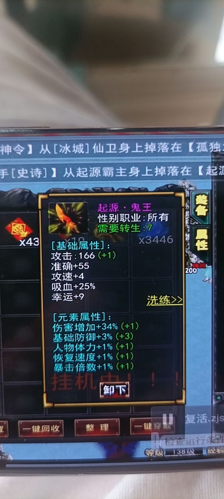 里面有的人特别恶心,喜欢偷鸡杀人,需要全程盯着,怕累的慎入,然后顶级8转装备可能2+3个7转的人也能杀掉,不怕贼偷,就怕贼惦记,不容易好好挂机,不过游戏是个好游戏,我挺喜欢