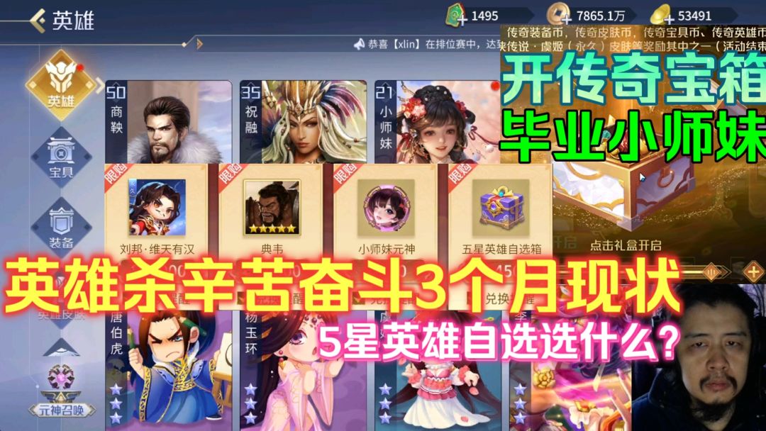 英雄杀辛苦奋斗3个月现状,开传奇宝箱毕业小师妹,5星英雄自选选什么?#游戏 #游戏日常 #游戏解说 #游戏杂谈 #游戏实况 #游戏推荐 #手机游戏 #回合制游戏 #卡牌游戏#英雄杀