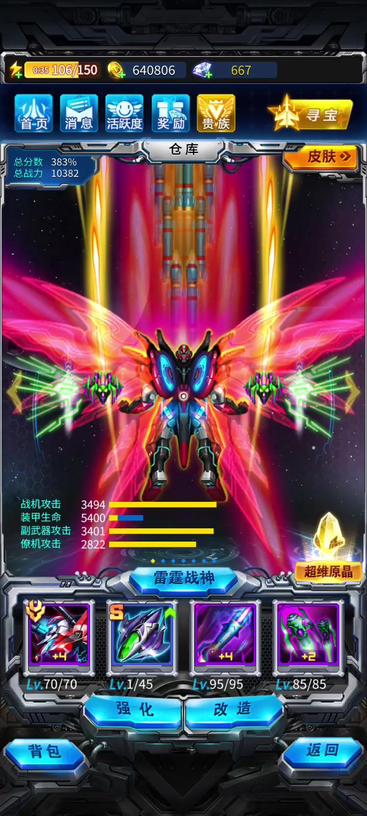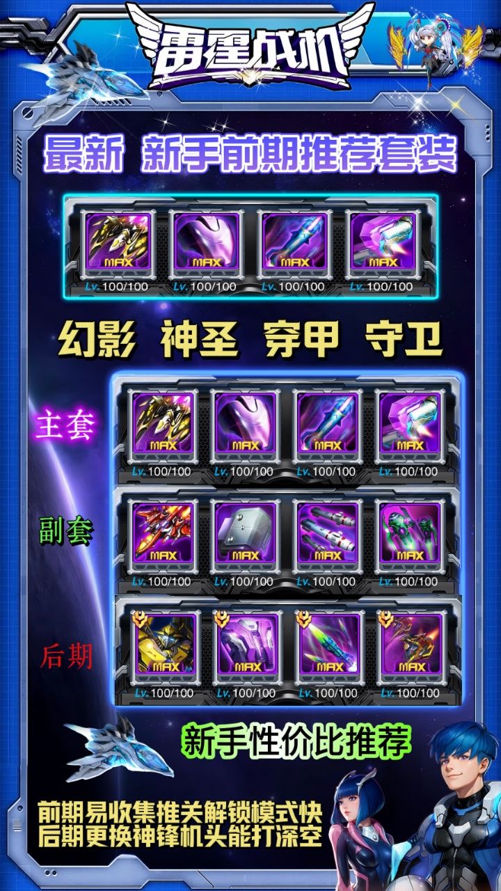 #雷霆战机首发创作征集令 前期不要碰s装备,优先把平民套(突击到激光)拉满,打过64关,boss模式至少要每天能打困难模式就行,这样s装才会出的更频繁些。过72关战神拉无双、金魂、巡星还有战神守卫,等这些有练度了,88关和92关就没什么难度了,这时已经可以开启原晶、巡航、boss超限还有刀锋套的boss了,这时突击到异形的套装就派上大用场了,如果练度不够,那么对应的boss就只能爆弹炸,很影响原