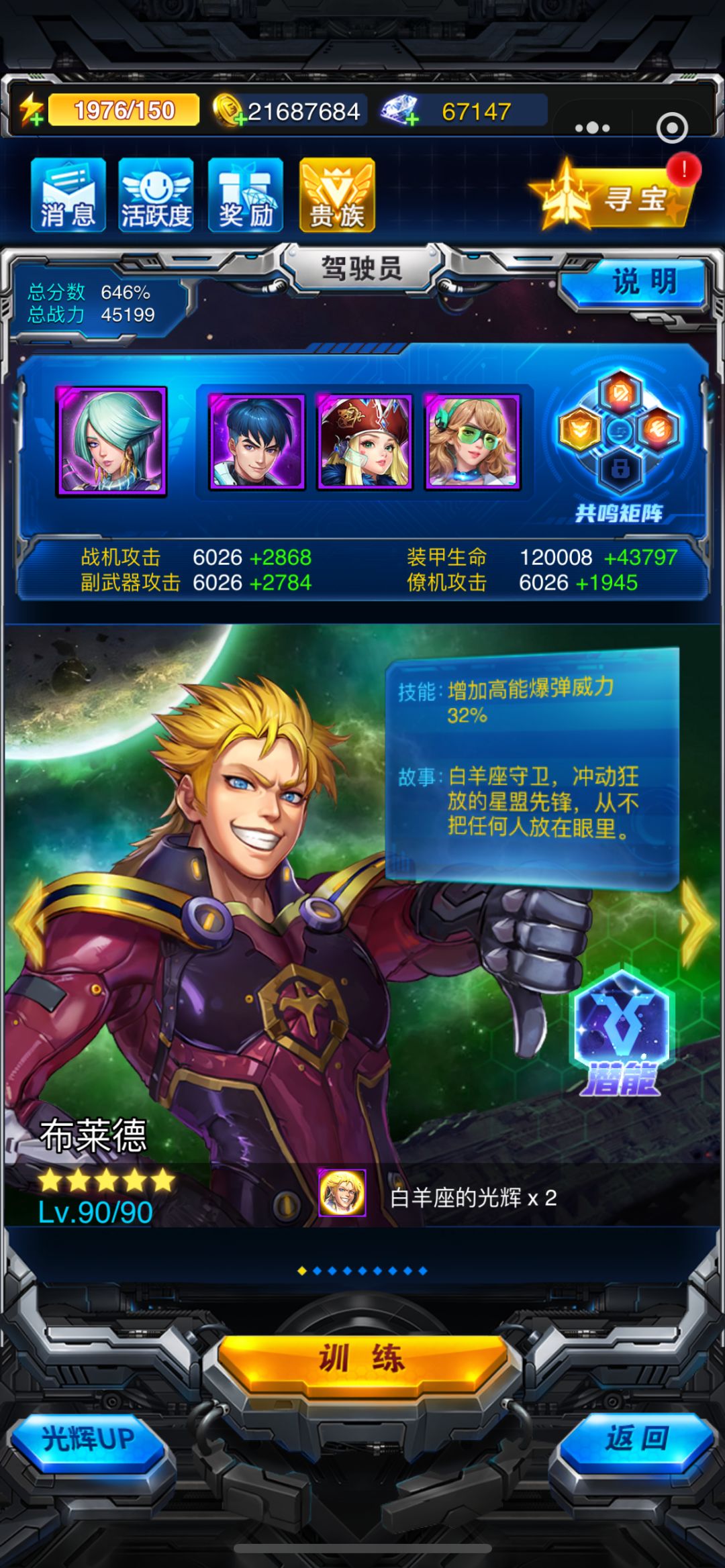 #雷霆战机首发创作征集令 一、战力构成先上公式:总战力 = 装甲生命值×5% + 主机攻击 + 副武器攻击 + 僚机攻击。包含装备基础值、原晶的属性数值、驾驶员属性加成。tips:在游戏前期打通关模式时,如果自身战力低于关卡要求战力。那么将会受到敌机增伤,我方减伤的负面buff。这也是游戏前期为什么要快速拉高战力的原因。 二、战力提升优先级策略 装备选择基础原则:优先选择同等级下基础数值更高且养
