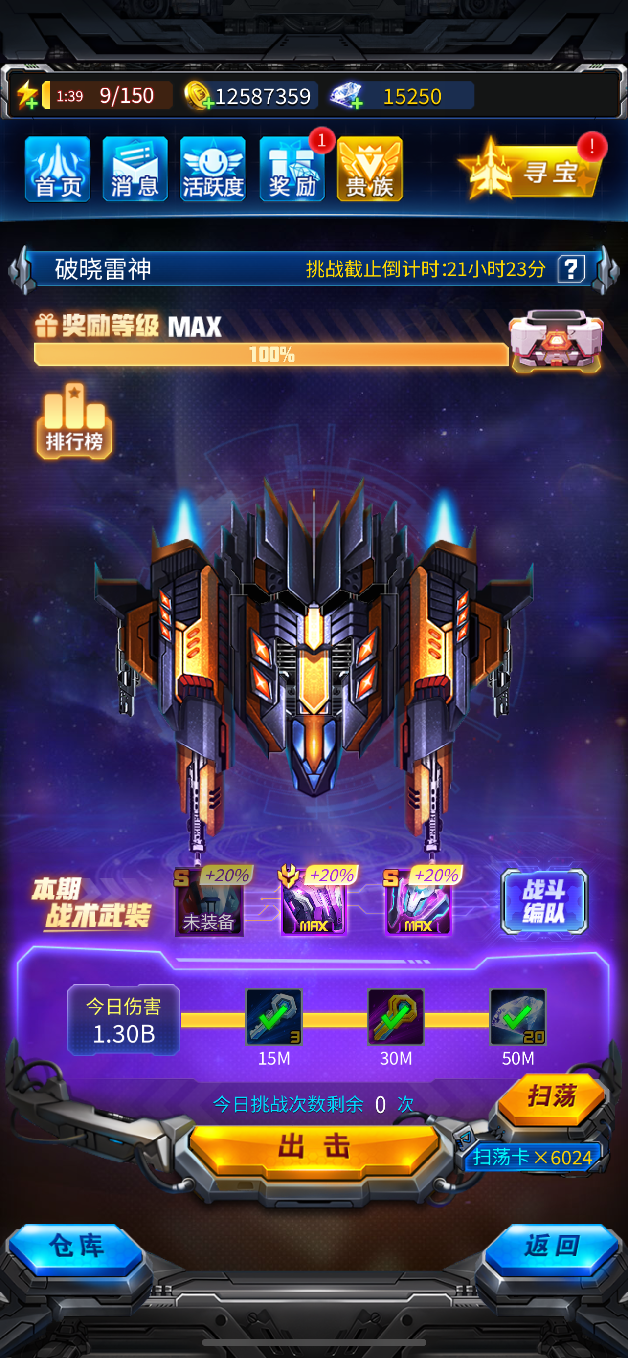 雷霆战机 战队boos 600+ 每周奖励拿满 需要进战队的来