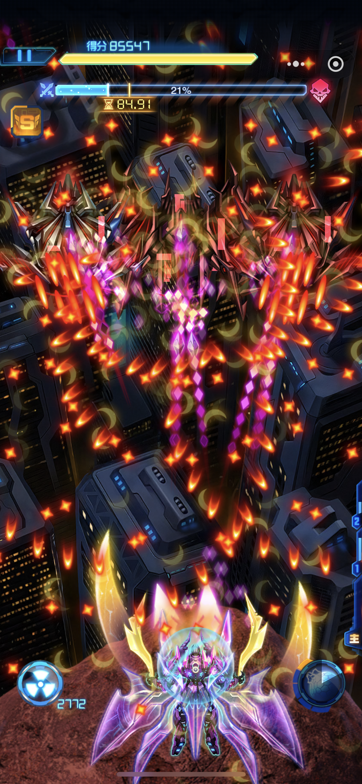 僚机失效,巨大彗星,密集子弹,还好没有大量陨石,不然就无敌了