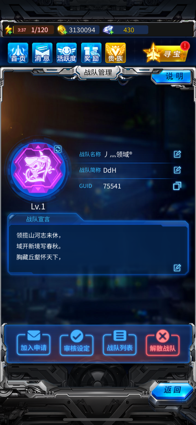 GUID:30918,七级战队,黎明战队招人啦,我们每周都可以稳定拿满重构石哦刚升7级现在有10个空位,战力20000以上日均boss伤害250+就可以加入哦,有了十位新成员的加入就可以拿到驾驶员光辉了,期待你的加入,一起向最高奖励冲击Q:为什么奖励这么高的战队要求这么低?是不是骗贡献的?A:我们的管理在有底线的同时给予了成员最大的宽容,除非你四五天不上线或者贡献过低,从建队至今从不随意踢人