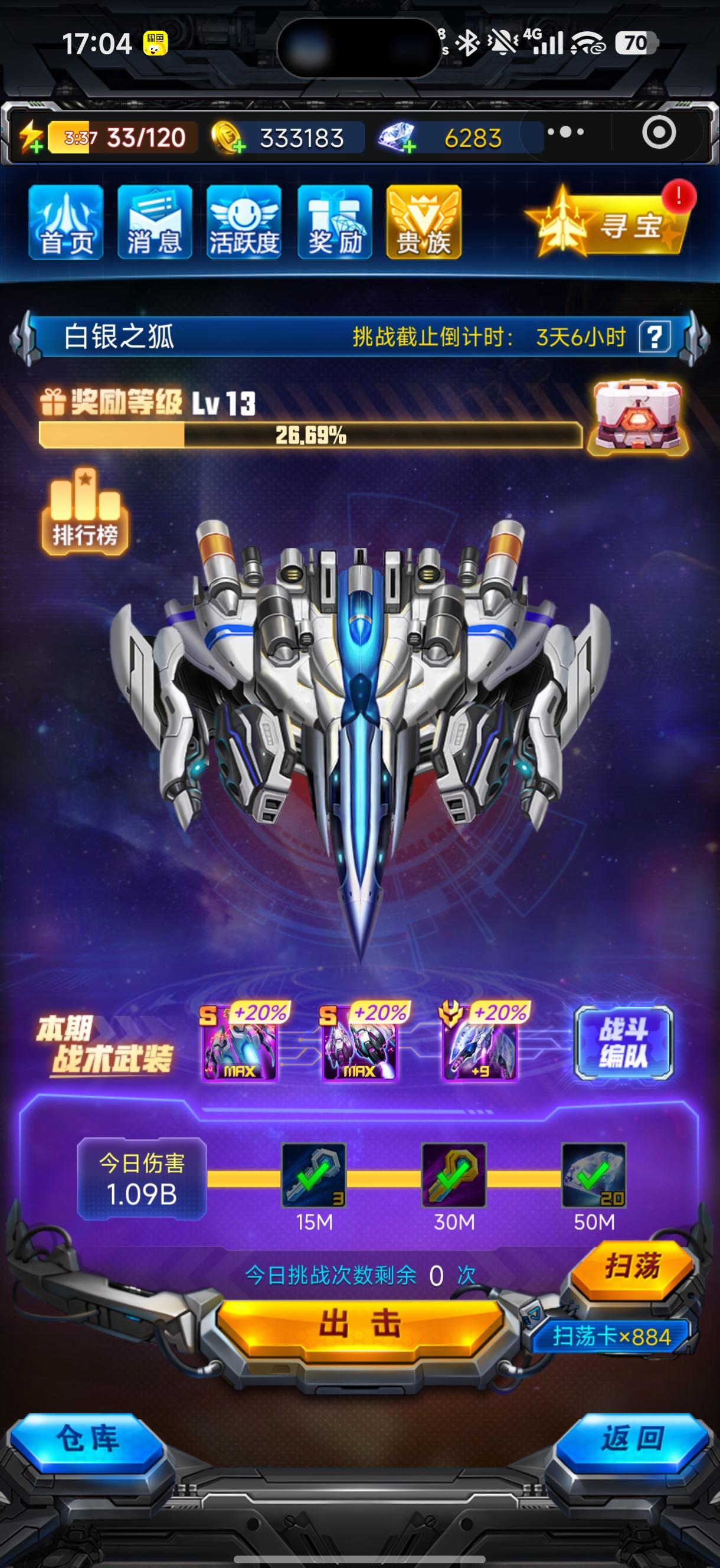 7级战队招人,要求:每天boss伤害300m以上,每天把3次金币和3次钻石捐献拉满,2w战力的进,现在每周稳定拿13级奖励 战队id:26886#雷霆战机集结手游