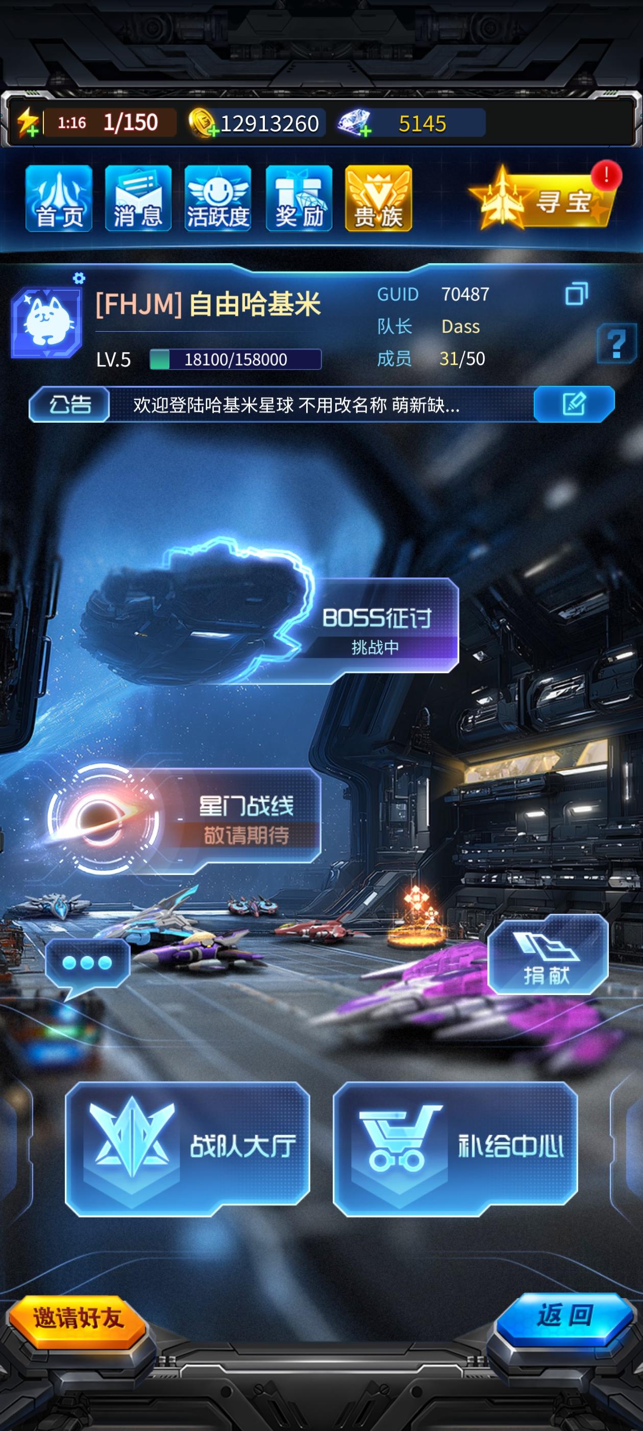 7级战队招人,要求:每天boss伤害300m以上,每天把3次金币和3次钻石捐献拉满,2w战力的进,现在每周稳定拿13级奖励 战队id:26886#雷霆战机集结手游