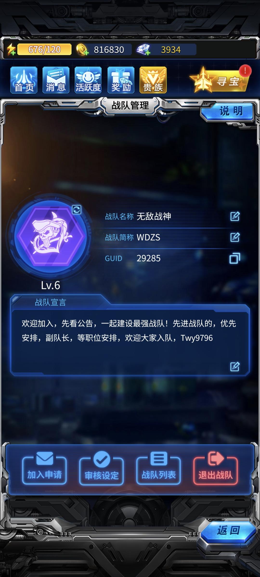 活跃战队STAR璀璨战队,可拿满重构石加一个光辉!要求每日完成金币钻石捐献、三次战队BOSS征讨!BOSS征讨要求每日600M,欢迎机长的加入!