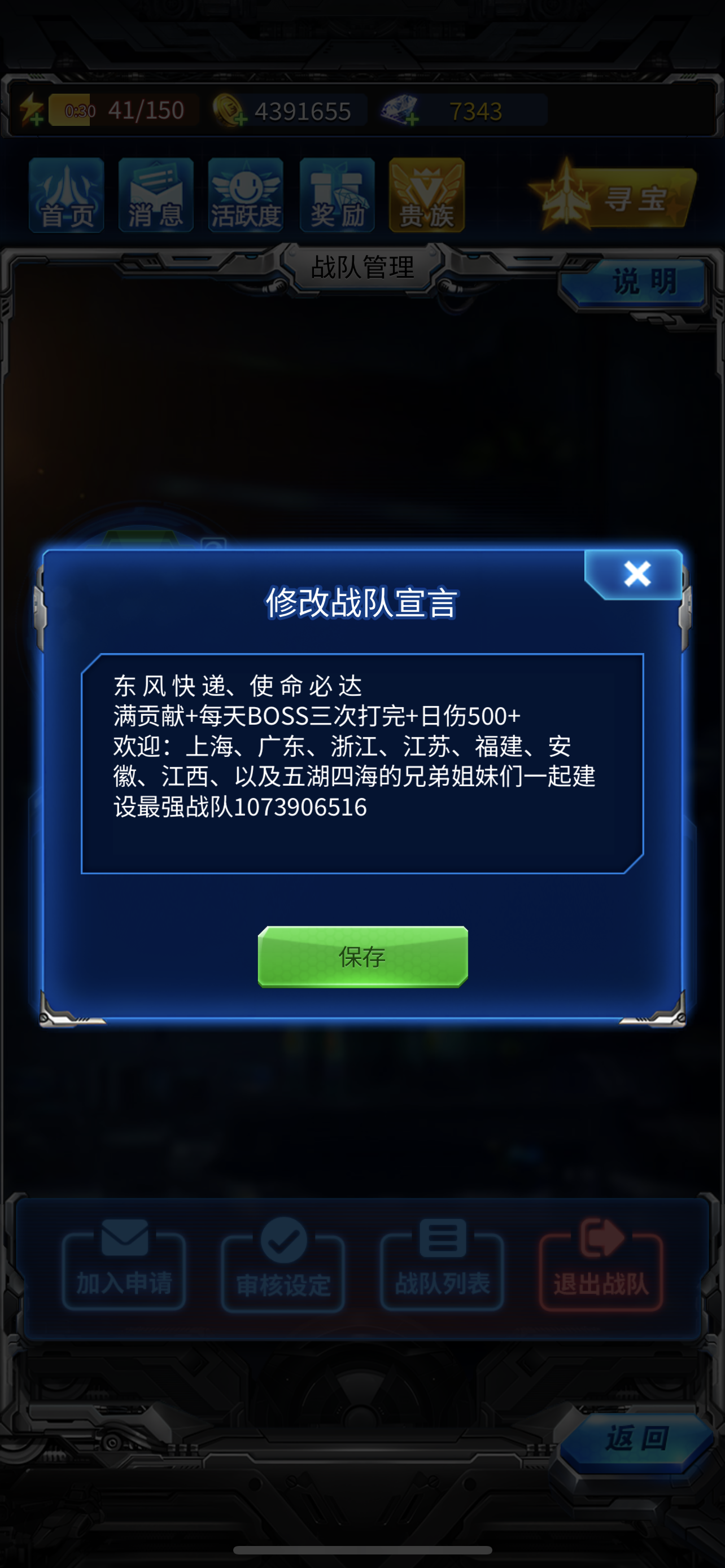 活跃战队STAR璀璨战队招募,本期有希望拿满全部奖励!要求每日完成金币钻石捐献、三次战队BOSS征讨!BOSS征讨要求每日700M,欢迎机长的加入!🌹🌹🌹