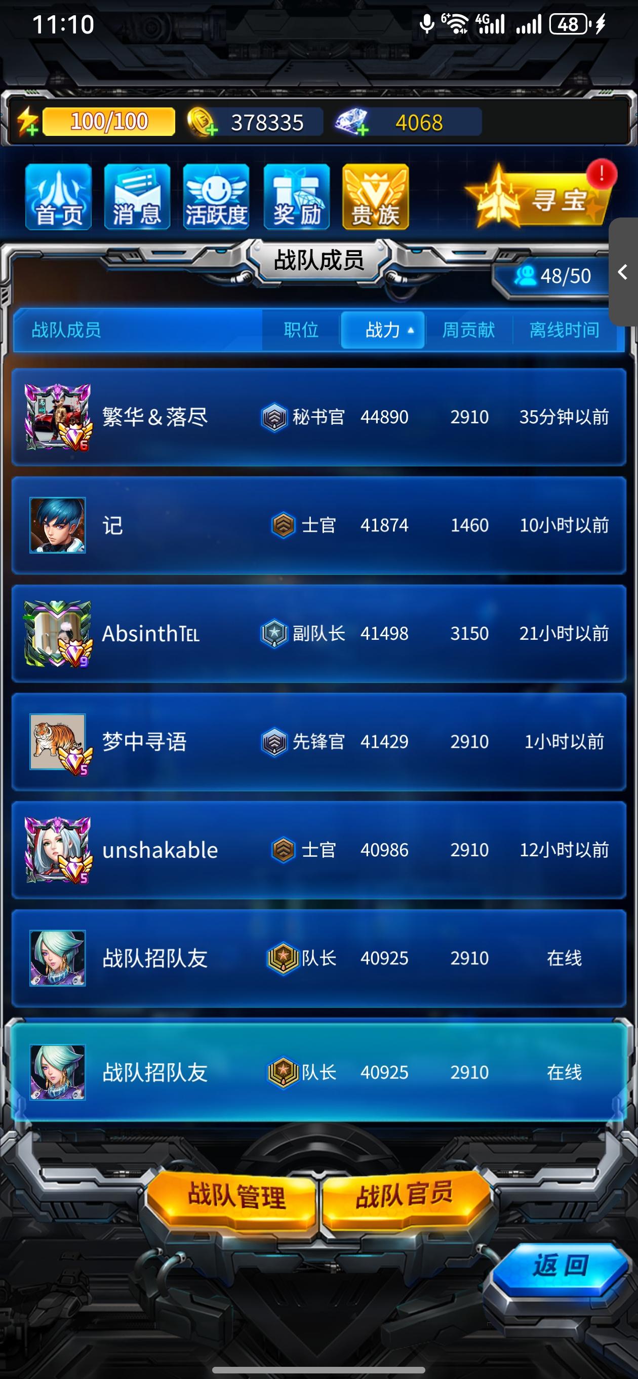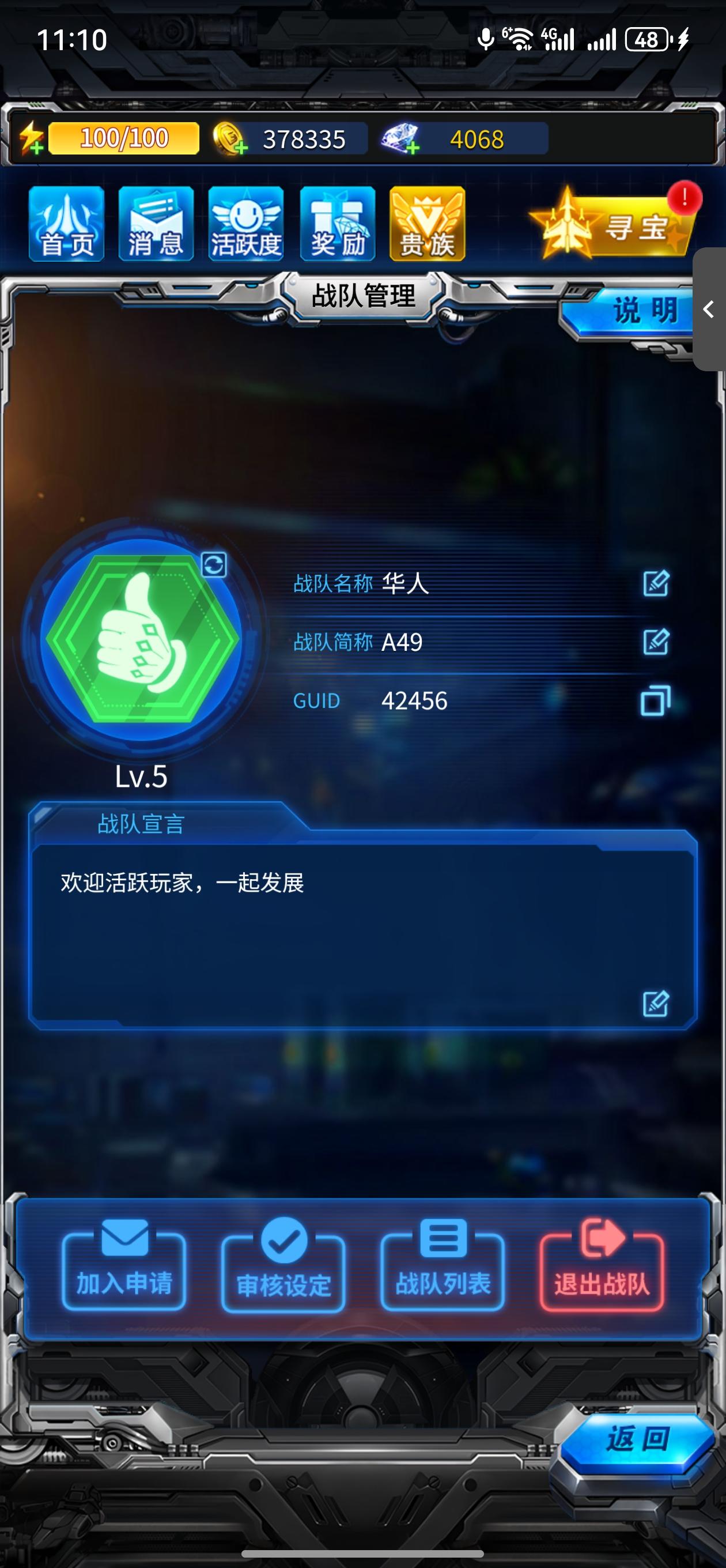 6级战队招人,捐献拉满,没钻石可以先不拉满。可以帮配装备。