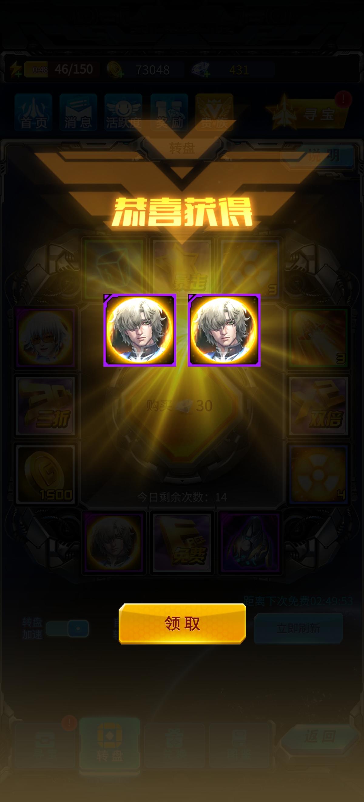 感谢转盘让我抽到了两个六分仪座光辉,并让我正好升到紫色品质