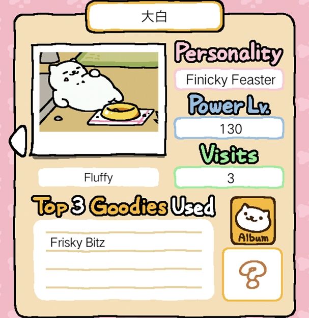 1.为什么我一添猫粮,猫粮旁边的大白猫会跑呢,还好吝啬啊!明明吃完了我的贵价猫粮诶!猫猫在玩玩具时,不要随意移动玩具,更换玩具,否则会跑掉,给的礼物鱼干很少。Tubbs同理,吃完了猫粮再添算是更换猫粮(玩具)了。所以不要打扰猫猫休息/玩耍/吃饭啦。Tubbs在这。2.猫粮哪个比较好呢?看情况吧,最好不要免费的猫粮。新手采用黄盆子的妙脆角最好,30银币有3盒,非常便宜,而且盈利比免费的好多了