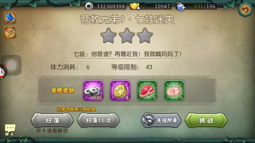 葫芦娃9-5推图攻略