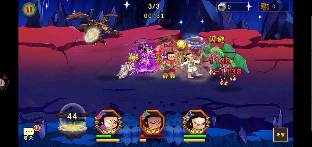 各娃配置 食物:狮子头 法宝:玉净瓶 月光宝盒:2星 第一小关 怪物介绍: 1只蝎子,1只飞行蜥蜴 无难度,大娃五娃血量下降到30%左右放瓶子,接下来平打,进入下一关 第二小关 怪物介绍: 2只蝎子,1.47增援1只蝎子 进入后,大娃接二娃技能,最好出雷,五娃回血,我在这里两次都没有出雷,节奏慢到法宝冷却好,只剩一两只残血蝎子,平打进入下一关 第三小关 怪物介绍: 2只蝎子,2只飞行蜥蜴进入后,大