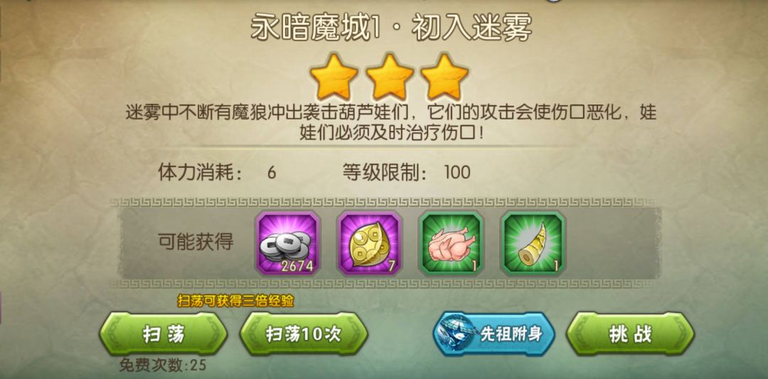 配置如下: 食物:凉皮 法宝:灯 月光宝盒:五星 第一小关 怪物介绍: 2只飞行蜥蜴,2只蝎子 进图放灯,平打,期间五娃和金刚回血一次,只剩2只蝎子时,平打至通关 第二小关 怪物介绍: 5只飞行蜥蜴 又是一排的飞行怪,无难点,进图红鸾技能控制,之后五娃金刚回血一次,无需放灯,平打过关 第三小关 怪物介绍: 2只飞行蜥蜴,2只蝎子,1个仙人掌。2.03时候会增援2只飞行蜥蜴 仙人掌是一个会反弹娃子伤
