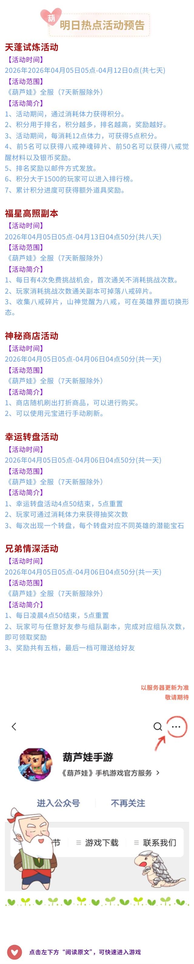 4月活动都有哪些呢?一起来看看吧!【葫芦娃手游】