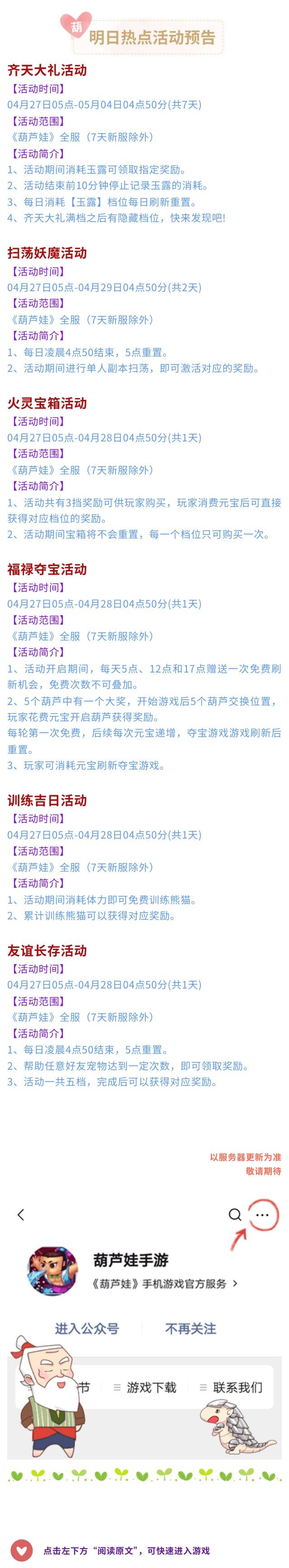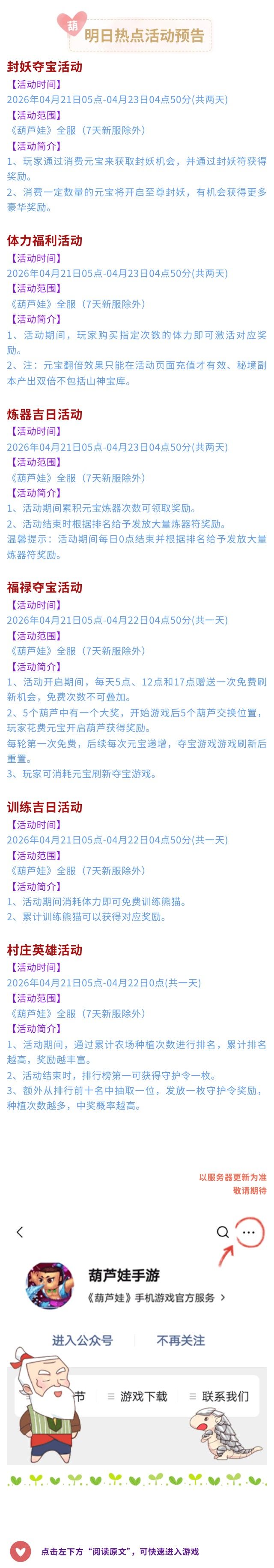 4月活动都有哪些呢?一起来看看吧!【葫芦娃手游】