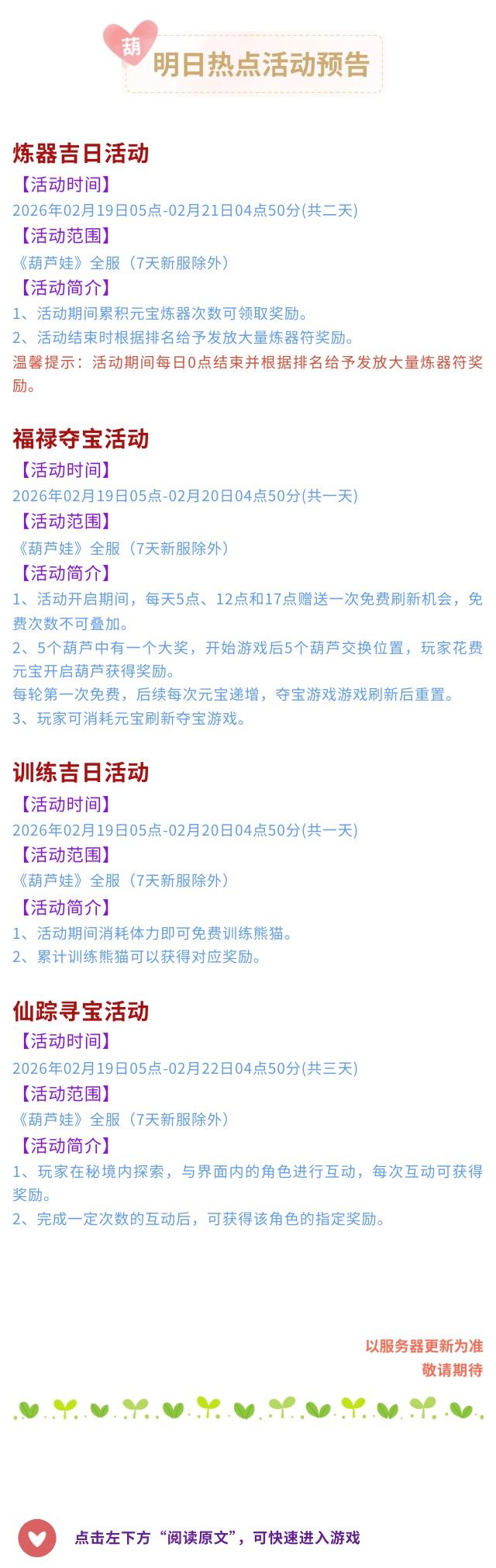 【葫芦娃】2月1日活动预告来啦!