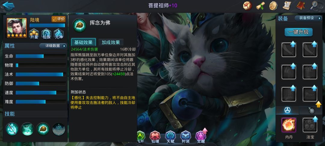 零氪新号过还是不容易,凹了三个多小时 第一凹经文经文保证三个关键的,罗汉,法华,果乘,其他的有自然最好,不然我也不会凹这么久才过了 第二看阵法,蛇盘第一,虎翼第二,没有第三 第三凹法宝,锁伞必备,最好有个琵琶,三号位也可以用剑阵或者加攻速,加易伤的法宝 灵气只要带爆的要保证五把就行