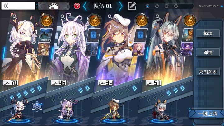 从左到右:珞珈,魏子鱼,沐子菲,零有人会说我是乱配的,我可不是乱配的,从阵容到技能没有三四年的游戏功底是配不出来的,我是有备而来。首先阵容,两输出一坦克一奶妈,战旗游戏的标配。此篇攻略我重点要讲的是阵营buff 也就是基因改造,队伍有没有可行性,这才是关键。珞珈:所有电系角色加攻以及普攻附带弱电效果,本身开局自带80能量配合沐子菲能开局满怒,电队的珞珈是可以开局就放大的,后面我会讲到,珞珈