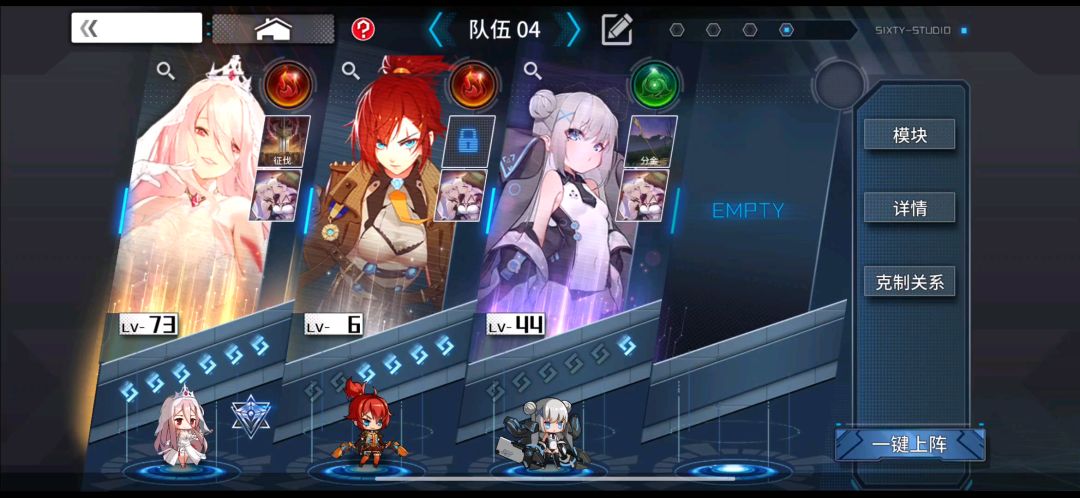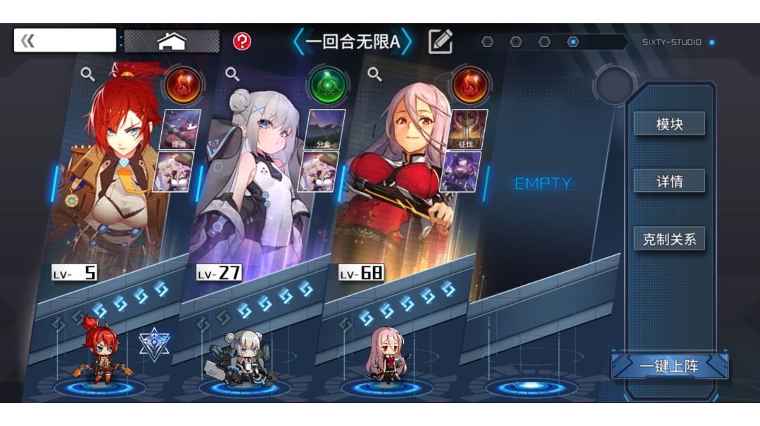 从八十层开始,楼主就是用这套阵容打到九十九层的,没有用k和珞珈,参考无限普攻的思路,这套阵容对等级要求不高,锦云无要求,玲风26级点出脉冲炸弹A,君临改造点出行动激活,羽飞等级高一点就好,但要点出君临节能,危机应对,游击战术