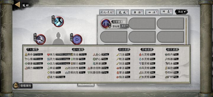 这些先天气运增加的资质都可以后天获取补满,而像是幸运、悟性这种后天很难增加,于是乎开局方面就选了天妒英才(开局后直接傻了,极度缺乏灵果,进而导致宗门晋升每次都得等资质拉上来才能进行,不过成为宗主后就很好解决了)