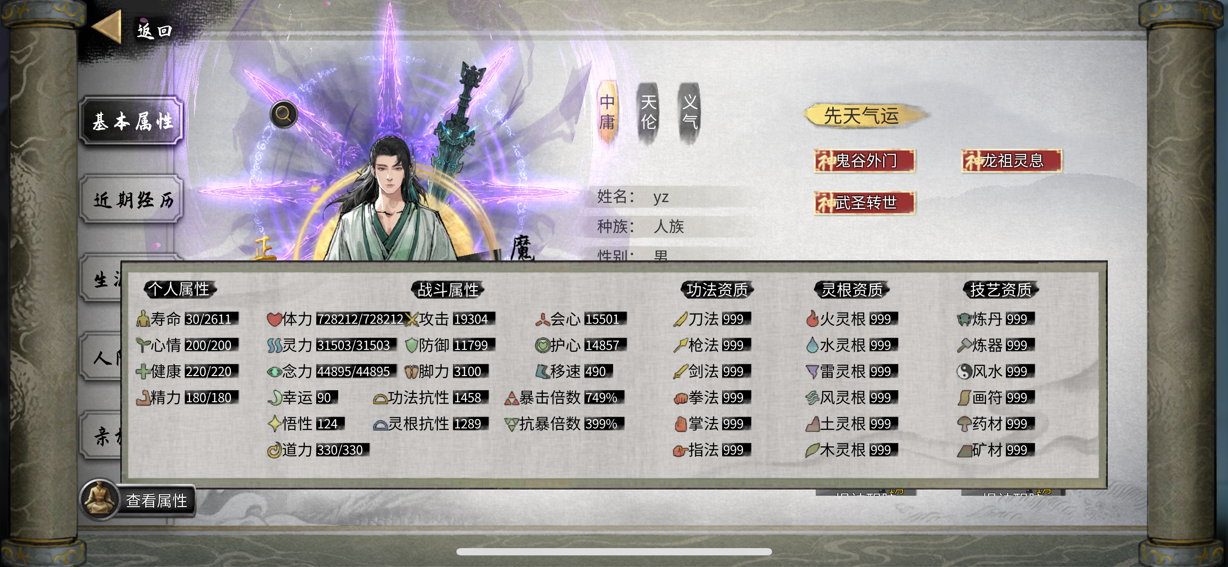 这个游戏,因为前期突破材料比较简单,元婴前都属于新手摸索游戏的过程。 我试了一下,三年可达元婴后期,可能不是最快,但估计也差不多了。 所以,我根据这次体验给新手一点建议,减少新手走弯路。(因为字数限制,部分内容只做指引,不做解释,解释可以在站内搜相关内容) 1.建角色 天赋锁【鬼谷外门】,不管你莲花、噬魂还好阴阳眼,必锁鬼谷,然后悟性131+ 想修什么功法,初始就什么功法最高,新手村送该功法的橙技