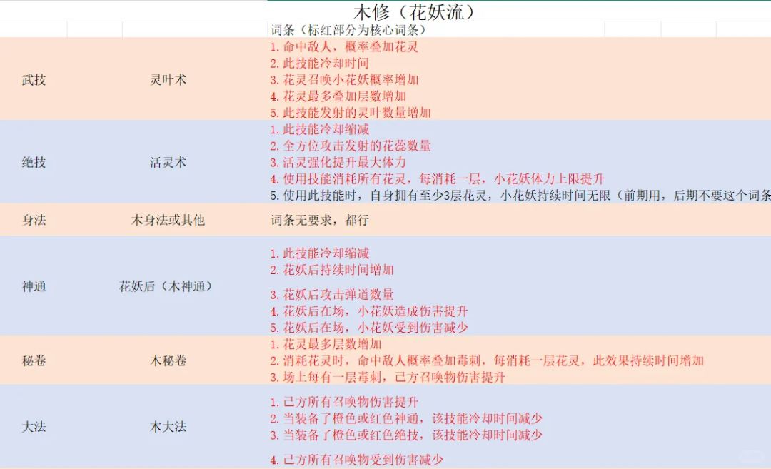 木修伤害高,生存能力强,可玩性强,机制独特。 一、功法词条 图中标红部分均为核心词条。 二、逆天改命 召唤物增伤机制较独特,部分逆天改命对召唤物不生效,核心逆天改命是双灵共生、三灵共生、四灵共生。 三、法宝 核心法宝:荒炎号角(注:法宝也有词条,核心词条已标红) 其他法宝的话多多益善。 四、器灵 器灵无必要器灵,如果选随心所御,就必须要云梦依。 其他器灵多多益善。 #游戏安利#游戏推荐#游