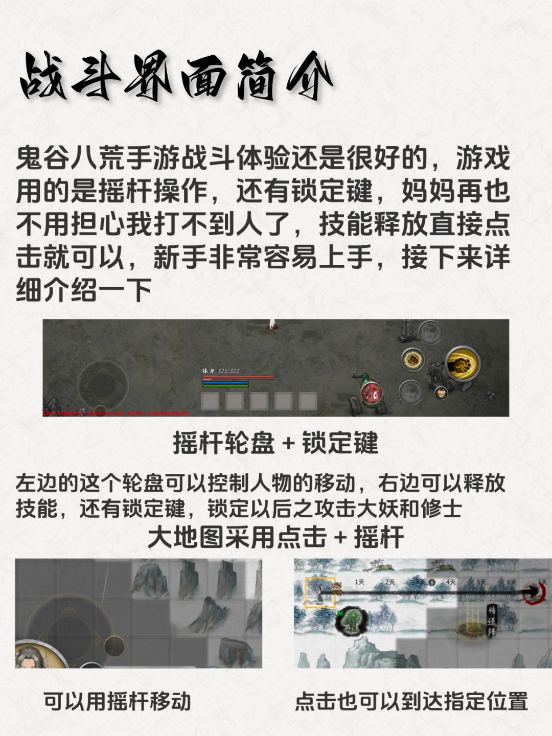 🌹鬼谷八荒手游战斗体验还是很好的,游戏用的是摇杆操作,还有锁定键,妈妈再也不用担心我打不到人了,技能释放直接点击就可以,新手非常容易上手,接下来详细介绍一下🌹 一、🌈摇杆轮盘+ 锁定键 左边的这个轮盘可以控制人物的移动,右边可以释放技能,还有锁定键,锁定以后之攻击大妖和修士 大地图采用点击+摇杆,可以用摇杆移动,点击也可以到达指定位置 二、🌈npc互动,界面简介 在鬼谷八荒里你会遇到各种各样的np