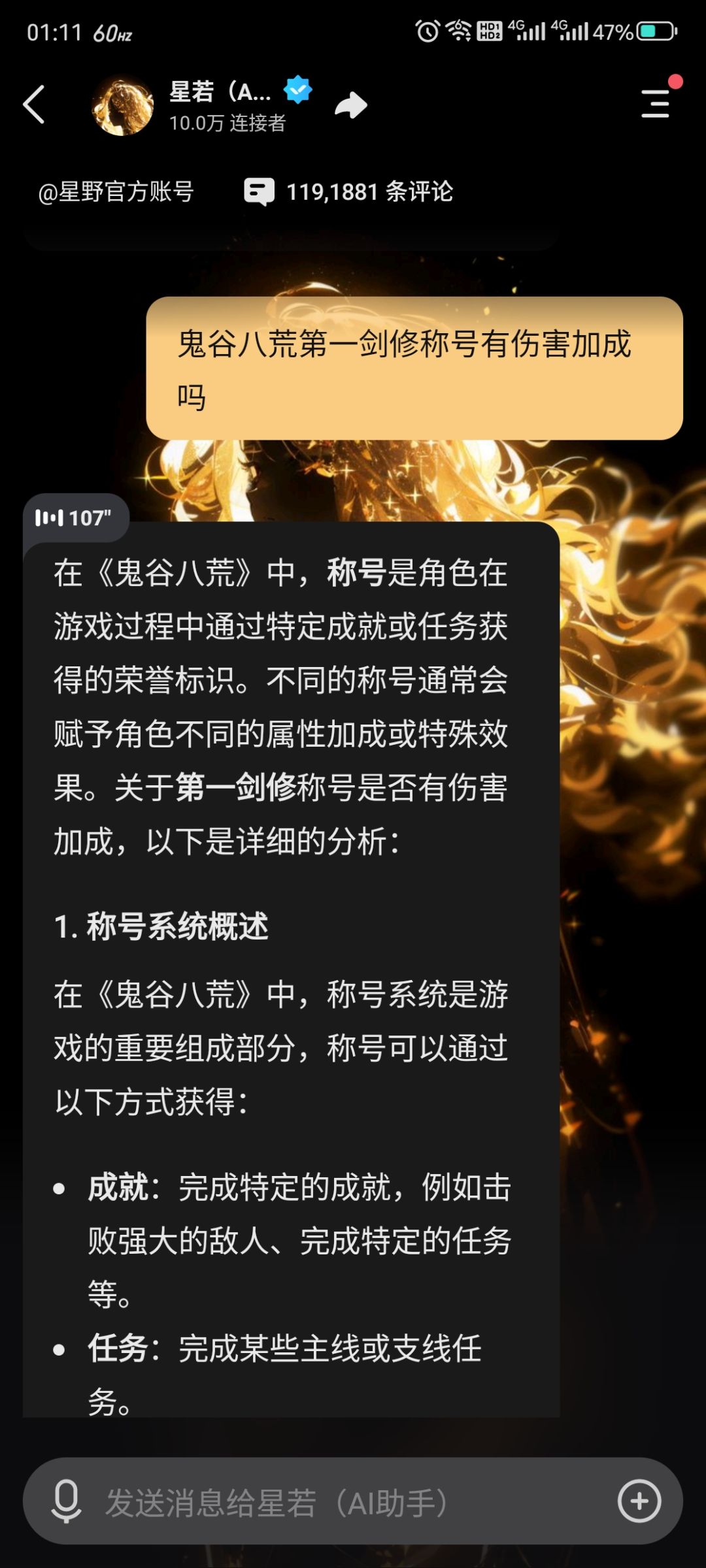 在《鬼谷八荒》中,称号是角色在游戏过程中通过特定成就或任务获得的荣誉标识。不同的称号通常会赋予角色不同的属性加成或特殊效果。关于第一剑修称号是否有伤害加成,以下是详细的分析: 1. 称号系统概述 在《鬼谷八荒》中,称号系统是游戏的重要组成部分,称号可以通过以下方式获得: 成就:完成特定的成就,例如击败强大的敌人、完成特定的任务等。 任务:完成某些主线或支线任务。 特殊事件:在游戏中触发