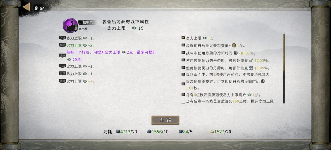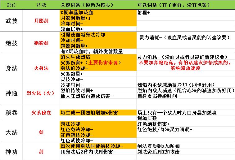 身法 武技 绝技 神通 劲 经 式 诀 录 神功 秘卷 大法 逆天改命: 龙女×5(龙灵,龙脉,龙潜,其他随意) 血灵入门 血魔大法(吸血) 地火明夷(烈火凤无条件释放) 杀心骤起(早拿) 神魂 蛟龙 冥羽 冷却,概率,暴击+充能 套装 过龙门2件套,渡江云,破阵子 道域 主风(高额增伤) 副枪木(增加领域时间) 器灵 推荐三个 云梦依(敌人受伤增加) 沐晴(回血) 酒尘(增伤,削弱敌人) 法宝 珠