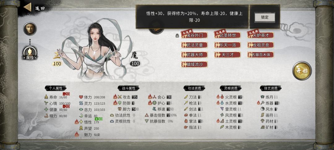 开局神器选了昊天眼没拿壶,如果不用剑过渡的话还是比较牢的,金丹即可成型踏上无敌之路。 目前玩到悟道,后面感觉也没必要玩下去了,已经没啥挑战性了。 火修和之前玩的风剑水修雷修不一样,是真的正面硬刚站撸boss 逆天以减伤保命为主 震天怒啸 天地同寿(兜底的,触发就秒杀对面自己回满血,极其变态) 杀心骤起 踏雪那啥 天外有天 血魔大法 因为前面逆天没拿到地火明夷,所以玩到悟道也没放过一次神通,其实也没