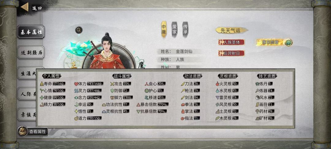游戏中发现的一点心得,仅供参考: 1、捏人的时候最好穿大红色或者你觉得醒目的服装,不然很有可能副本里不知道自己哪里去了; 2、开局的气运等由于有插件功能所以意义不大,尽量堆攻击,然后把想要练的流派弄最高。这样再进入游戏,初期不需要去相应技能的宗门学功法,直接琅琊阁买技能书就好,不用考虑数字和词条,过度而已; 3、进图后先看一遍宗门的突破逆天技能, ①若有你想要的逆天直接加入, 没推荐信就看资质点,