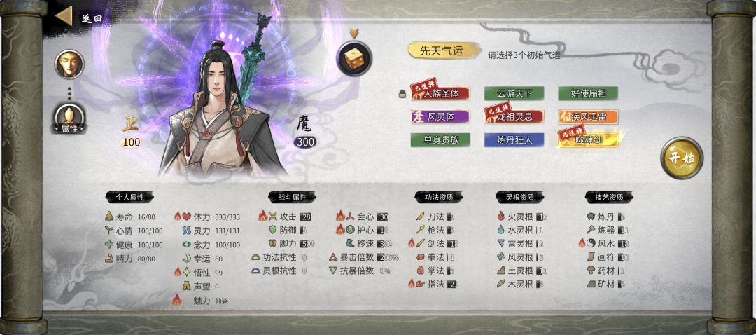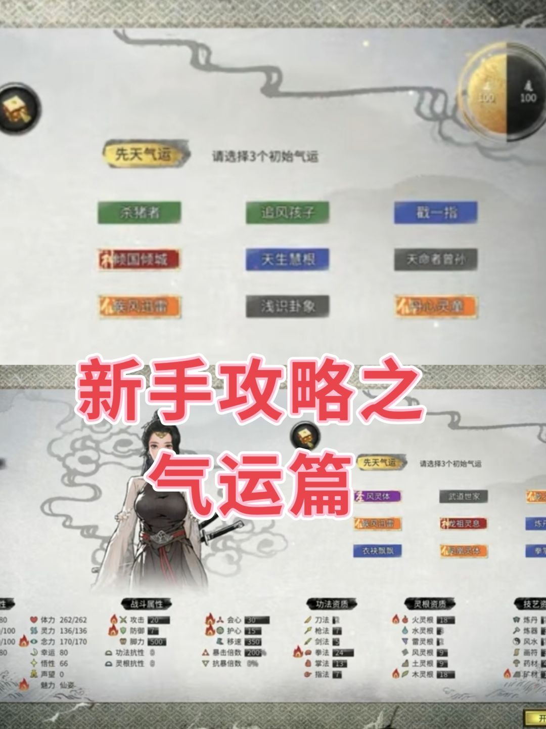 鬼谷手游昨日已经正式上线啦,大家都玩的怎么样呢? ✨今天给大家带来新手攻略之气运篇! 在属性界面,可以通过投掷骰子来调整角色的属性,先天气运和各项资质。 面板是随机刷新的。可以挑选自己喜欢的面板进行游戏。 🔥其中先天气运对角色的影响最大,我个人最推荐选择增加悟性的先天气运。 气运稀有度从高到低分为红色,金色,紫色,蓝色,绿色 🔥🔥优先选加悟性的,因为灵根资质游戏里都很容易获得,悟性低了后期学个技能
