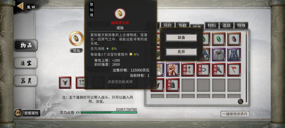 #鬼谷八荒新手教程 绑定登仙师父一步登天,所有资源应有尽有,快意江湖尽在其中。 1.开局选择龙祖气息(噬魂剑谨慎选择),开始游戏后选择双生鱼佩。将境界随意提升到筑基期,然后疯狂跳过月份,等到第五年往后,随意在大世界走几步触发机遇(如果没有触发,那就继续刷月份)。 2.机遇是登仙境的师父收你为徒并把你的境界提升到结晶境,此时你需要赠送物品给师傅,待好感度升至三颗星后将双生鱼配的另一半转交给师父,并