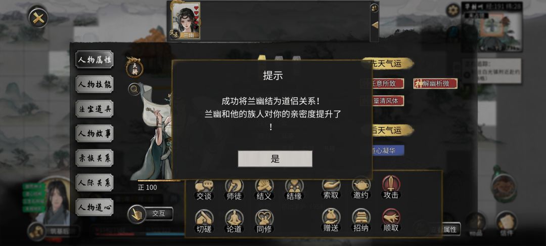 兰幽这个舛命任务前后总共会送2次(每次3本红色心法),金丹境界以前先别做,留到金丹后再做获得的秘籍也会是金丹(怎么控制?金丹以前秘籍尽量少学,减少对兰幽的触发)。疯狂SL刷了两本极品,一本身法冷却-46%,另一本与修仙者战斗体力增加上限1319点。为什么选这两个,①是因为我玩的是风剑,②是再过5个月就是升仙台比试,无论升仙台比试还是私下斗殴越阶单挑及宗门战,这两本秘籍怎么都觉得香。