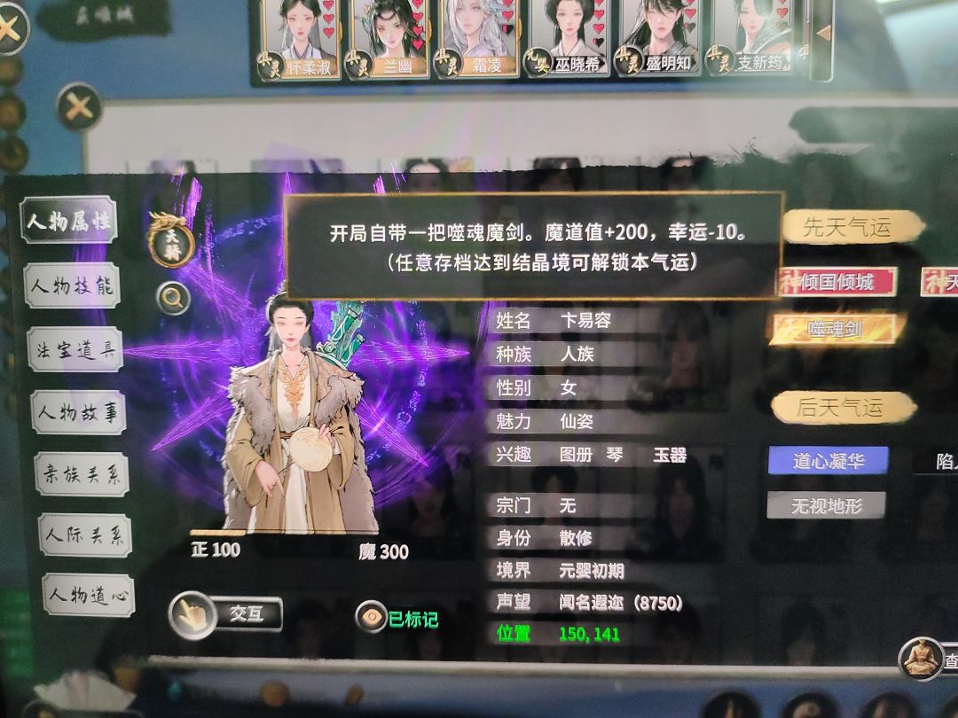 噬魂剑后天获取经过(本人获取经过):先去华封州触发剧情,然后回到与实力相对应的州,找到携带噬魂剑的npc(可以跳月查看左上角刷新出的与噬魂剑有关的信息) 找到npc之后,直接击杀,再点击跳月,跳差不多三个月,就会刷出噬魂剑的拾取选项。 #鬼谷八荒日常