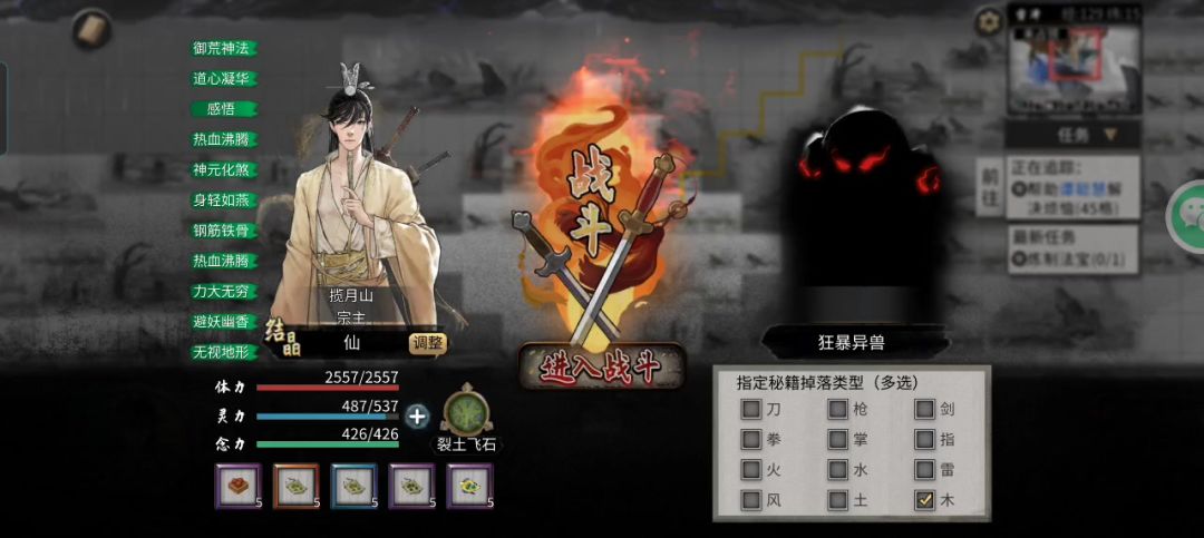 新手首次玩洪荒模式。 一定要玩火剑(除非你想肝)。 化神之前,跟简单模式的感觉一样。 上来直接找个筑基的剑修师傅,学红色流血武技和绝技(学完就甩,不然占用亲族突破位置),然后找火系的结晶师傅学(火狐和火凤,学的就是结晶,有醍醐可以升金丹)。 (武技和绝技就更不用慌,炼狱当康就爆结晶,醍醐升金丹的就行,筑基的过渡到能学) 心法怎么弄就不用教了吧?宗门必定刷秘卷和神功的,筑基宗门没有大法,但攻打别的宗
