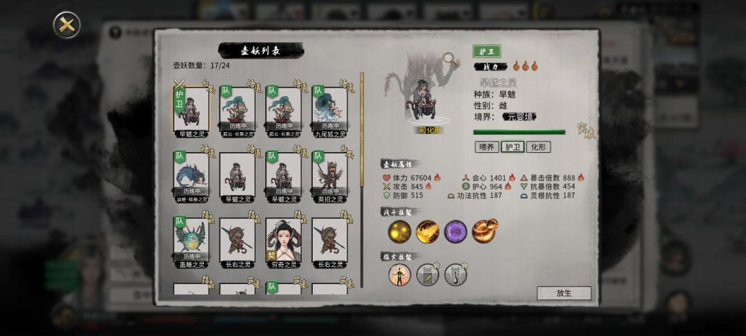 当道友在游戏中选用【炼妖壶】,则可在八荒世界中通过【炼妖壶】吸收妖兽,并在战斗中派出妖兽协助作战! 非战斗期间可派出妖兽前往八荒世界历练,根据不同的历练,妖兽们会携带道具或强化自身归来。 其中有些妖兽还可通过历练学会幻化人形的技能,如: 九尾狐、鲮鱼、穷奇、长乘、旱魃,等等 其中妖兽䑏疏,在游戏中存在特殊奇遇故事: 八荒仅余的䑏疏为众修仙者追捕,而获一名好心的修士帮助释放。一人一兽,从此互为挚友,