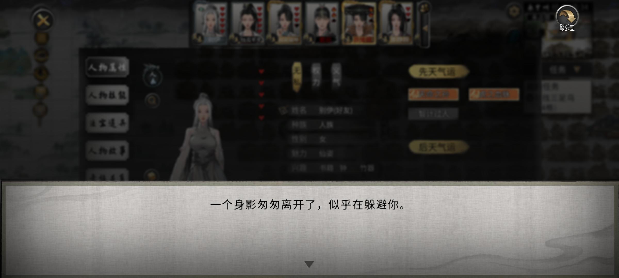 点了第一个,然后就出现这个字,因为前期只有她不嫌弃我,所以好感才高我传她道心,意思是拍卖会她被别人盯上了,然后我过去刚好把那个人吓走了?