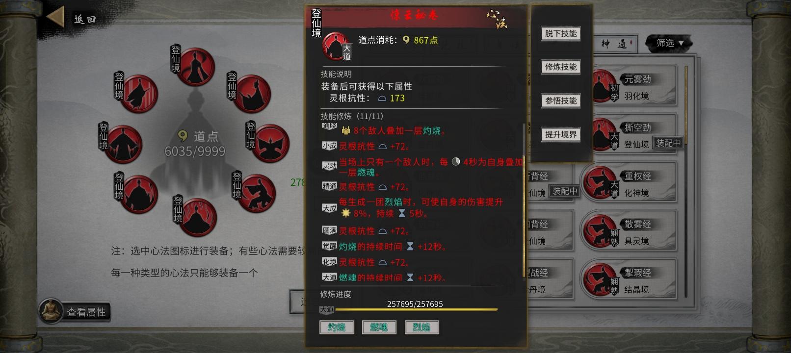 萌新,第一次存档,插件全开,抄作业搞的火剑,目前刚悟道,三剑领域,推到仙盟了,火剑原理大概懂了,靠无限cd+叠伤是这意思吧?大佬给看看,我怎么叠不出来,打冥妖-1-2的。。。而且我感觉我的身法cd好像有点长,超过了5s,使用身法刷新绝技cd倒是没什么问题,是我基础太低了还是少词条?眼看大佬们火剑秒天秒地的。萌新都想退坑了。。。
