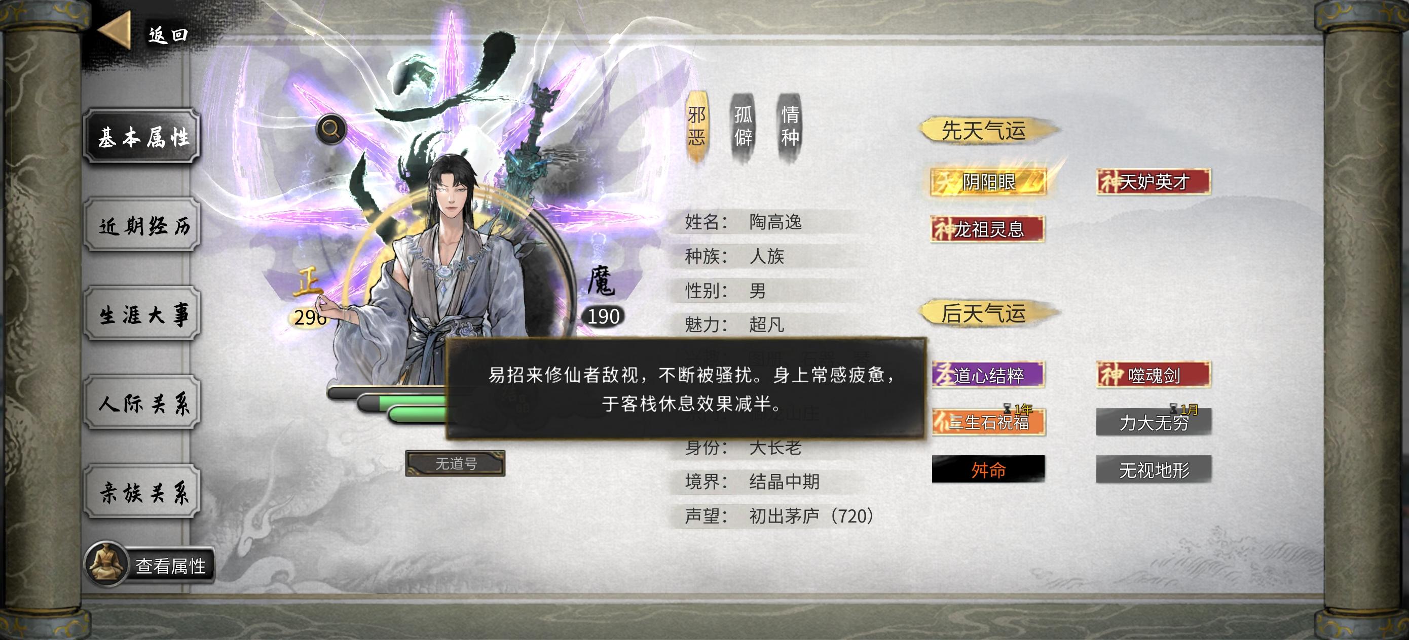 鬼谷八荒 性格 权重表