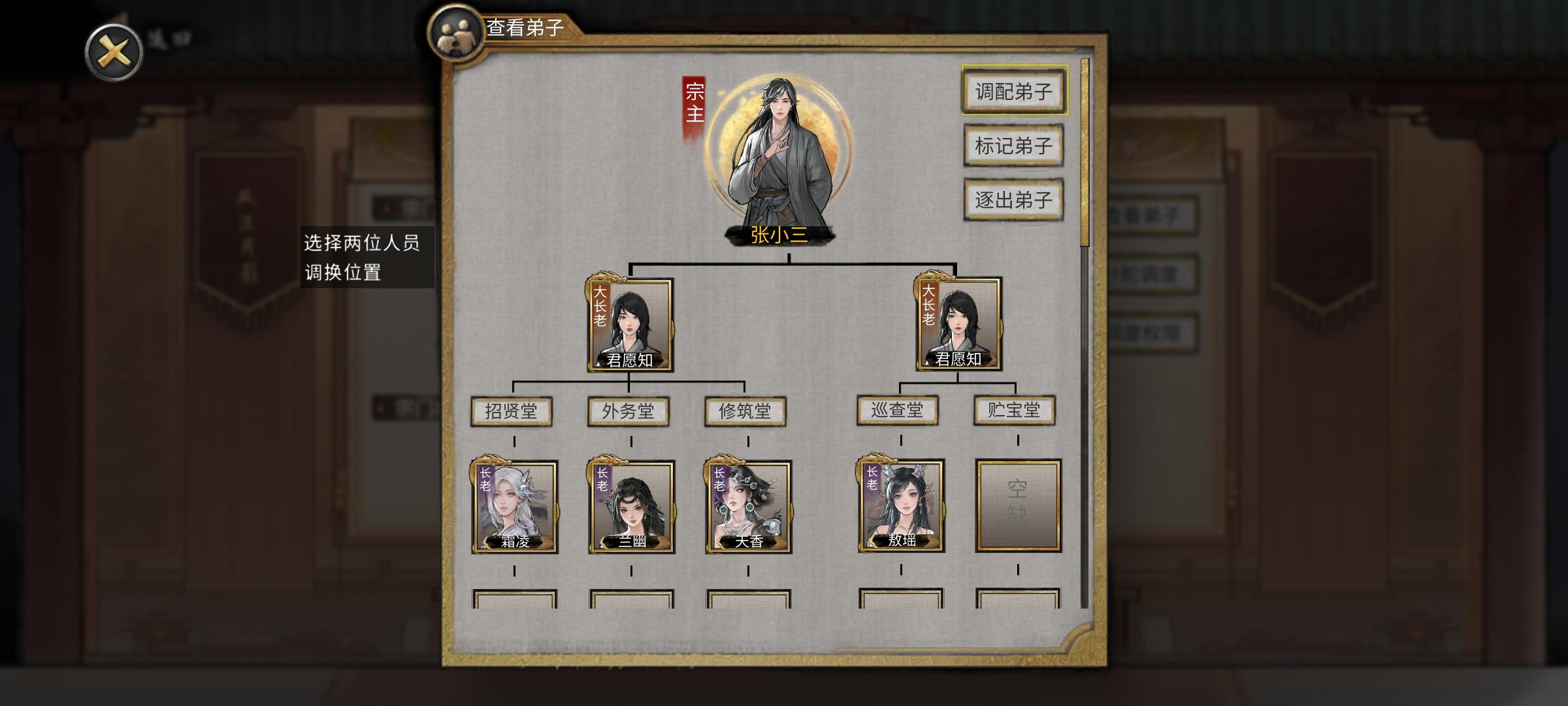 1、义气、正直性格的化形壶妖不参加宗门大比,其它3个中庸天伦忠贞的化形壶妖也不参加。2、玩家搬迁到赤幽州的宗门天生矮其他宗门一截,人数格子少了几十个。 其他在暮仙州有分舵的宗门,它的格子是有一大堆格子的,没有分舵的是10个真传、5个内门、5个外门的。如图1为宗门示意图,暮仙州开局就只有4个宗门我也不知道什么回事。图2为苍雪殿(赤幽州总部)人数格子部分图,它有10个真传位,70个内门位,50