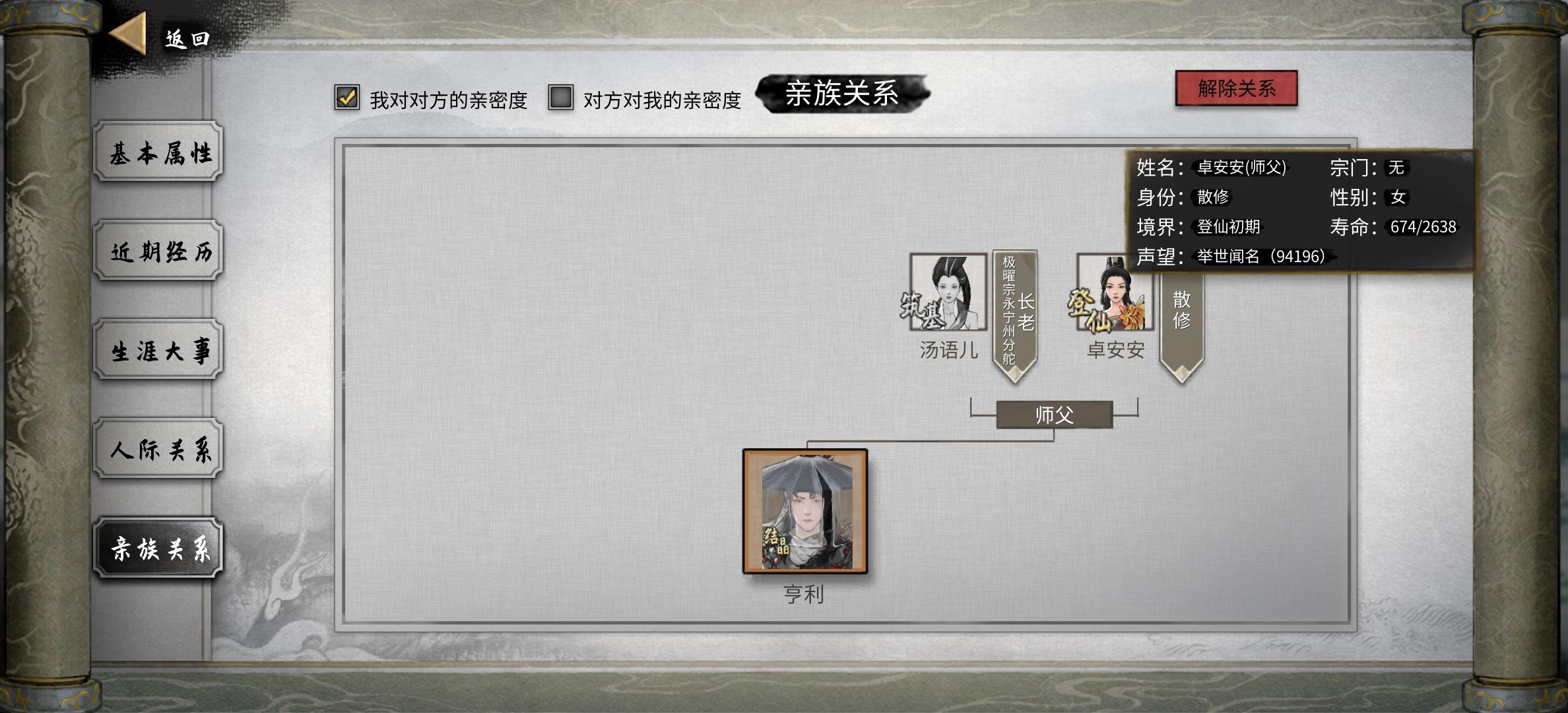 1、义气、正直性格的化形壶妖不参加宗门大比,其它3个中庸天伦忠贞的化形壶妖也不参加。2、玩家搬迁到赤幽州的宗门天生矮其他宗门一截,人数格子少了几十个。 其他在暮仙州有分舵的宗门,它的格子是有一大堆格子的,没有分舵的是10个真传、5个内门、5个外门的。如图1为宗门示意图,暮仙州开局就只有4个宗门我也不知道什么回事。图2为苍雪殿(赤幽州总部)人数格子部分图,它有10个真传位,70个内门位,50