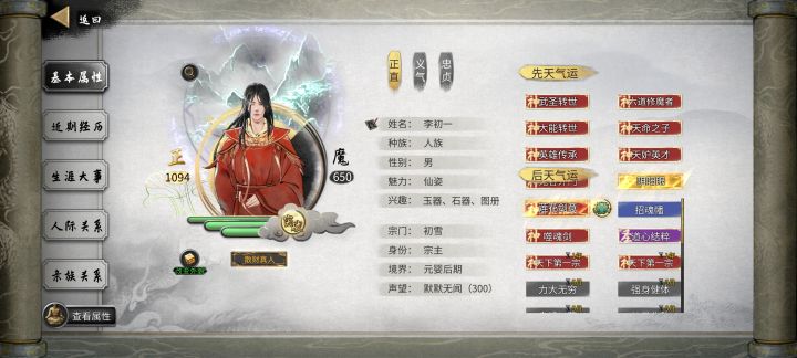 一.开局操作——————————1.进游戏主页面左下角插件管理,全部打勾。2.开局的先天气运可以选10个,不会操作的论坛搜索。天翎剑意一定要有,因为真的很爽。另外建议三个金色天赋全都选,噬魂剑也可后天抢npc3.神器随便选,对于角色强度影响微乎其微。会玩之后倒是可以去体验神器整活。这里进入游戏……二.发育思路 永宁洲——————————1.一定要做宗主为什么一定要做宗主呢?因为做了宗