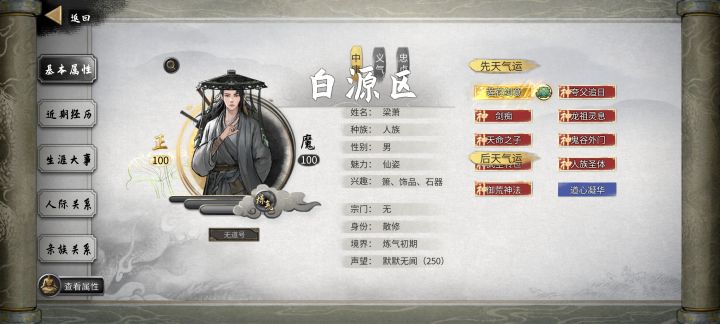 就是你选先天的时候,先找好九个锁定(要开更新的新插件),然后自己找出三个“已选择”,注意,必须是有已选择,不然开不了。然后这三个已选择的别去动了,保持已选择状态。开始刷基础悟性刷个最高的再进图就行。你如果先刷属性再去点三个已选择,会失效(进图就是三个了而不是九个)。必须是先定好三个已选择,再慢慢刷属性。第十个要穿通关衣服,前面九个选2,刷好悟性再把第十个选上。还搞不定就按我和评论区说的去做,