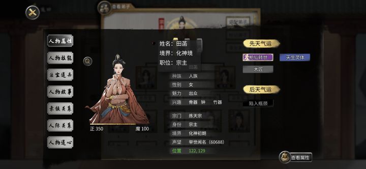开始前准备,插件全开,选择洪荒模式,NPC数量较多(更好的刷到厉害的NPC) 先天气运必备:阴阳眼、大能转世 性格推荐:忠贞(好结道侣),传承(好拜师),中庸(不会被相反性格的敌视) 剑,风灵根资质尽量高(节省SL灵果时间) 神器选择:双鱼佩 1.进游戏先确认阴阳眼是否能正常触发(保证后续镇妖魂能正常触发,触发了其他的魂要回档,确保镇妖魂能稳定触发两次) 2.零步大法(步数走完后保存,